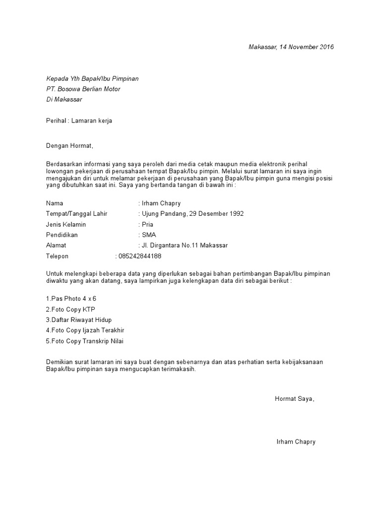 Majalengka 45453 (depan polsek kasokandel). Pengalaman kerja saya sebelumnya di pt penta artha impressi sebagai teknisi selama 4 tahun. Di bawah ini ada beberapa contoh surat lamaran kerja untuk berbagai posisi. Di bawah ini ada beberapa contoh surat lamaran kerja untuk berbagai posisi. Apakah surat lamaran kerja terbaik?
